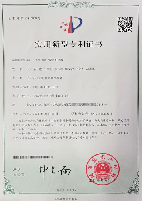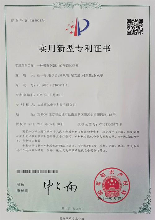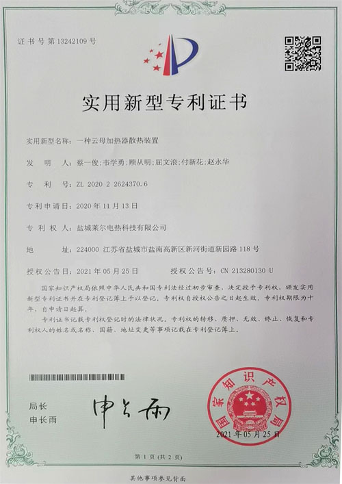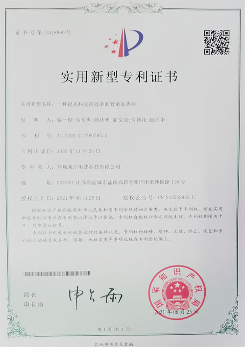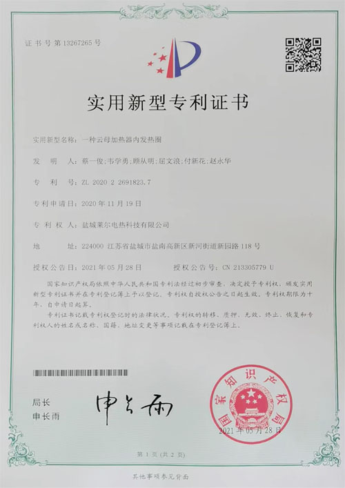 資質(zhì)榮譽(yù) 當(dāng)前位置: 鹽城萊爾電熱科技有限公司 >首頁 >資質(zhì)榮譽(yù)